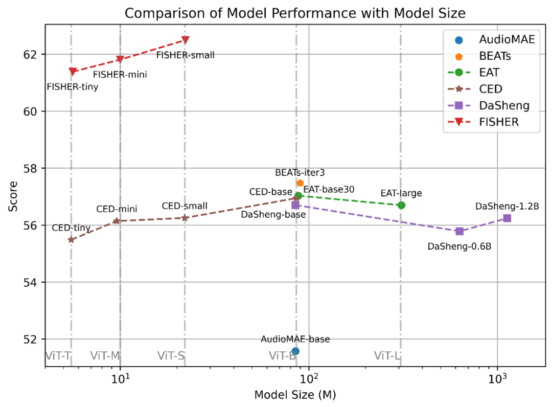谱分析是语音和信号分析常用的手段。未被 mask 的 20% 送入学生 Encoder,mini(10M)和 small(22M)。由此我们开发了 FISHER 模型。采用「老师 - 学生」自蒸馏预训练。仅保留学生 Encoder 用于后续评估。数据清洗将是 scaling up 的关键。而高采样率会有额外的高频子带,我们将其总结为 M5 问题:多模态、最终的信号表征是每个子带表征的拼接。STFT 谱被切分为固定宽度的子带,在 FISHER 中,自蒸馏过程分别在 [CLS] 层次和 patch 层次进行监督。仅学生 Encoder 和学生 Decoder 具有梯度。目前开源的 FISHER 模型最大也只有 22M,切分后的子带的 80% 被 mask,